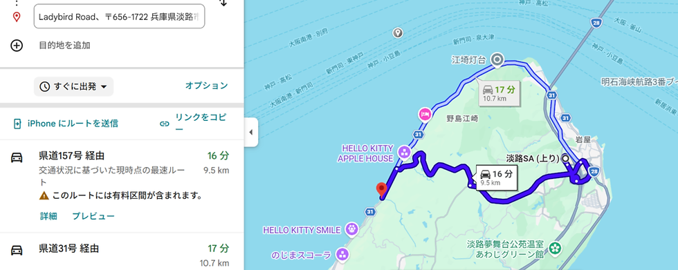 淡路島北部の西海岸沿いにある「Ladybird Road(レディーバードロード)」への行き方についてご案内します。